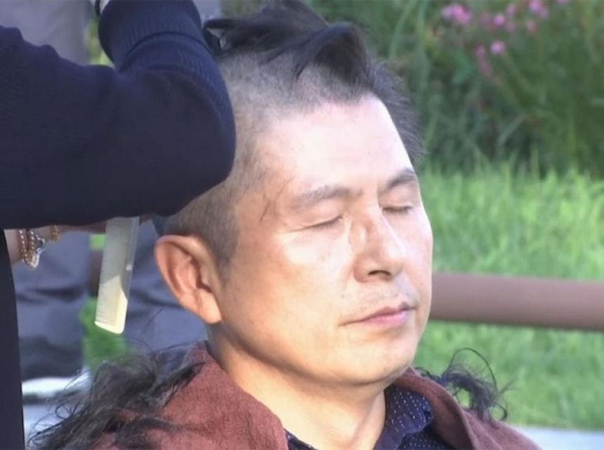 Hvang Kjo-an obrijao je sinoć glavu pred pristalicama i novinarima ispred predsjedničke palate.