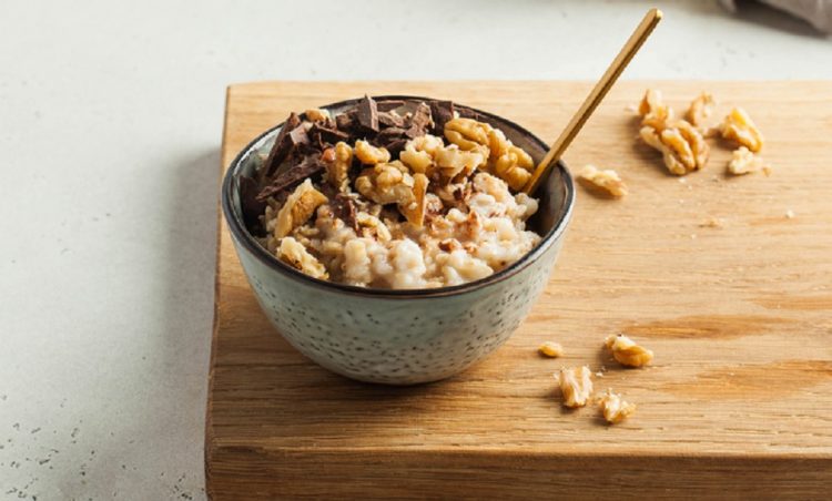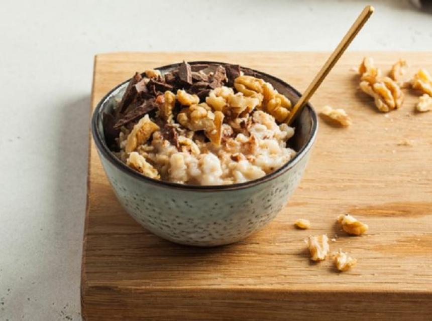 U manjoj posudi prokuhati mlijeko i dodati zobene pahuljice. Miješati dok se ne zgusne.