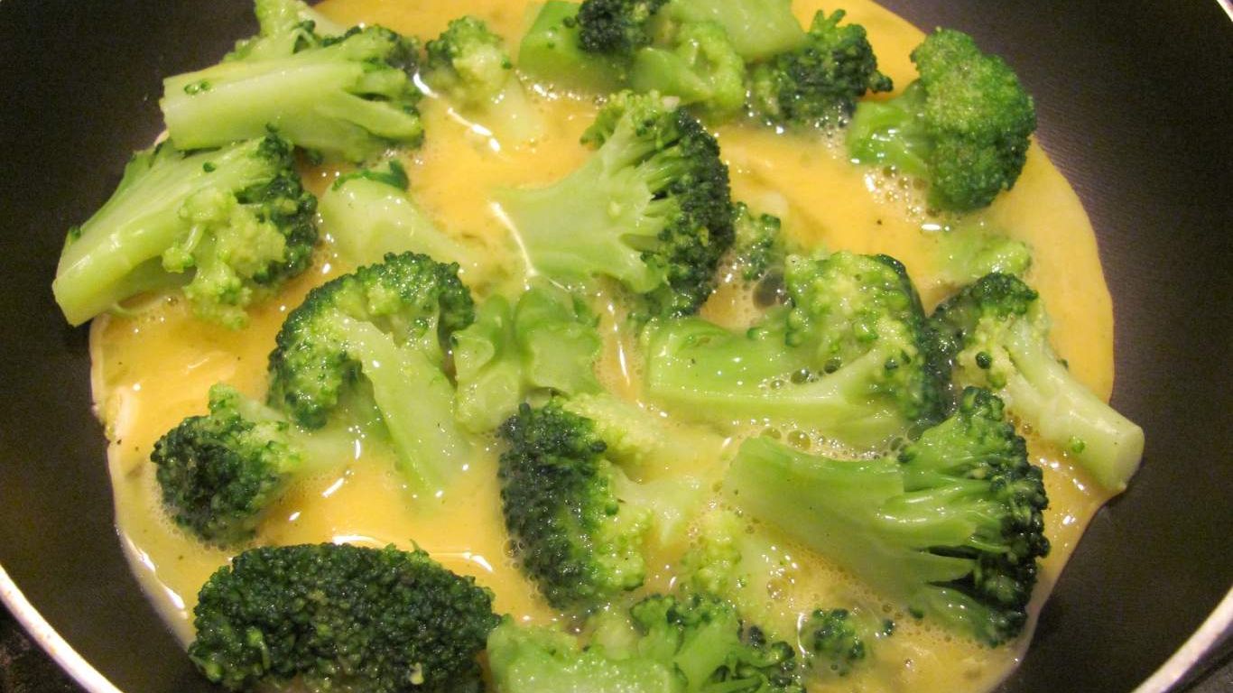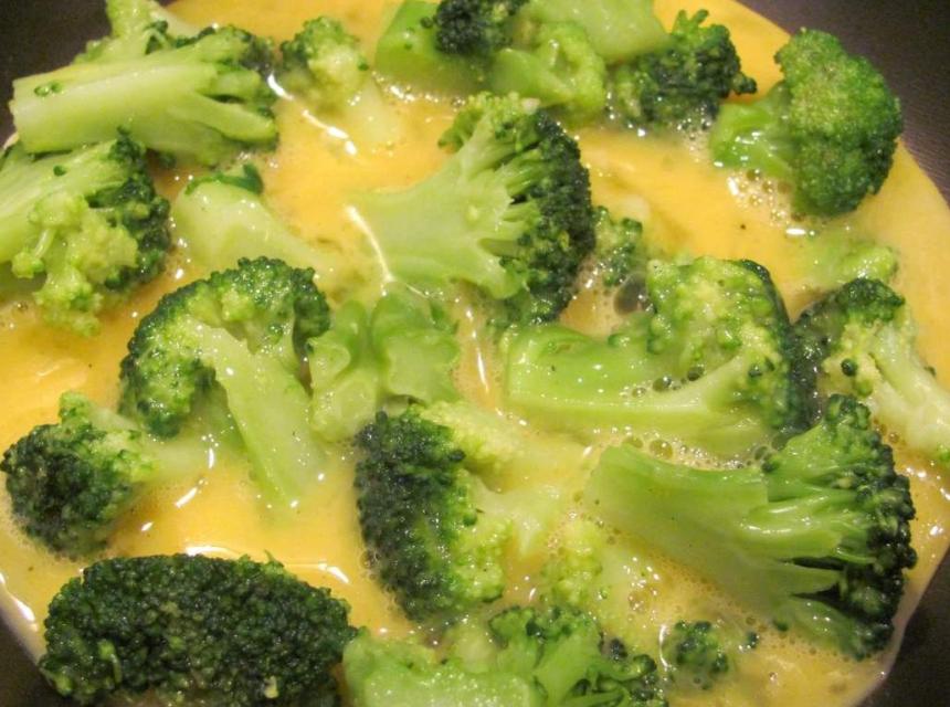 Pustite minutu da se donji dio zapeče. Dodajte brokulu na vrh te pustite još koju minutu dok se cijela smjesa ne sjedini. Na kraju, jedan kraj omleta preklopite do trećine površine te tako poslužite.