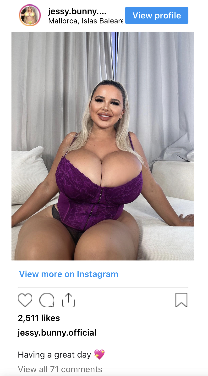 Prvu operaciju imala je prije pet godina, a zatim je postala bizarna, toliko da je nakon jedne operacije prebacila salo u spolni organ. Prošle godine, Jessy je ugradila još veće grudi kako bi ih učinila “ogromnim”, uprkos tome što je već postigla cilj da ima najveće grudi u Austriji.