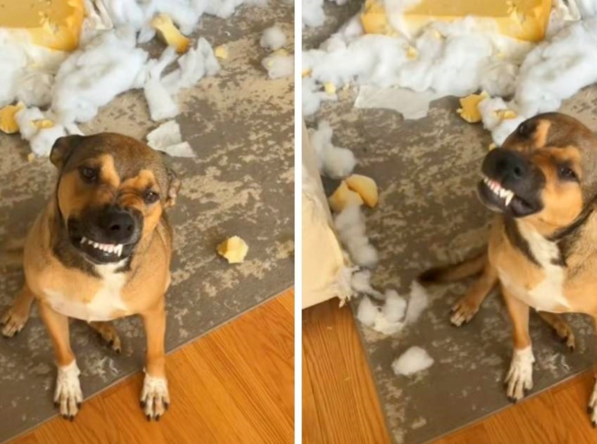 Video koji je Jenna krajem ožujka objavila na TikToku pod korisničkim imenom @jennacoppolino brzo je postao viralan, s više od 6.2 milijuna pregleda. Snimka prikazuje Kennyja kako sjedi ispred kaosa koji je prouzročio, dok maše repom i vlasnici pokazuje zube, kao da se smiješi nastojeći skrenuti pažnju s nereda iza sebe.