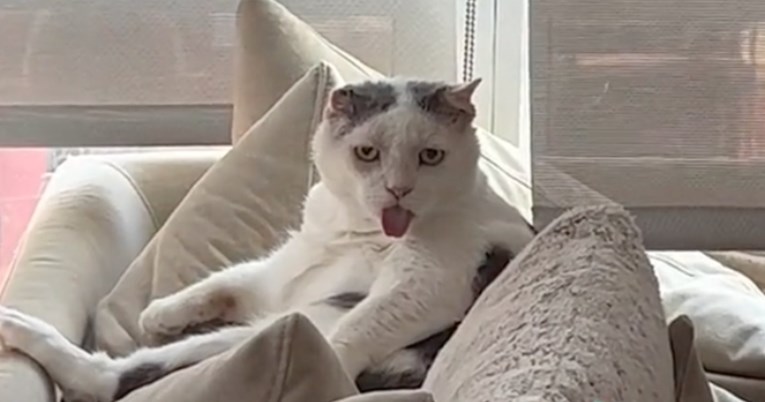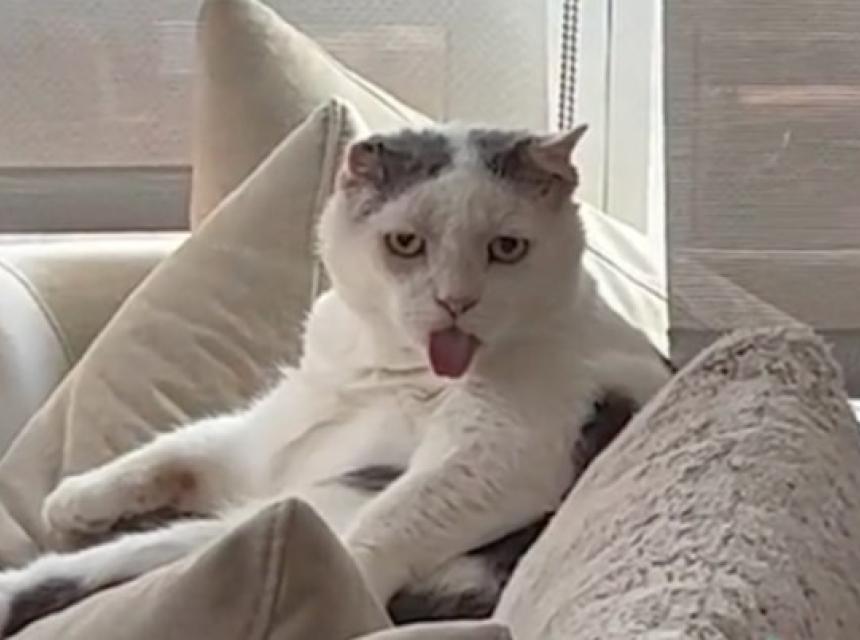 U kratkom isječku objavljenom na TikToku mačka zuri u kameru koja je u ruci vlasnice koja joj prilazi. Drži isplažen jezik i djeluje kao da se oporavlja od burne noći.