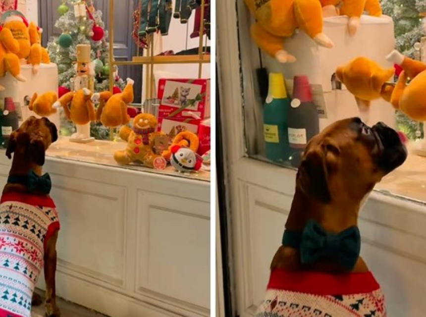 Camille je u viralnoj objavi otkrila da je zamolila dečka da uredi izlog njezine trgovine, a njegov izbor božićnih ukrasa oduševio je njezinu kujicu Valentine. Video prikazuje Valentine kako liže izlog jer se s druge strane stakla nalaze plišane igračke u obliku pečene piletine.