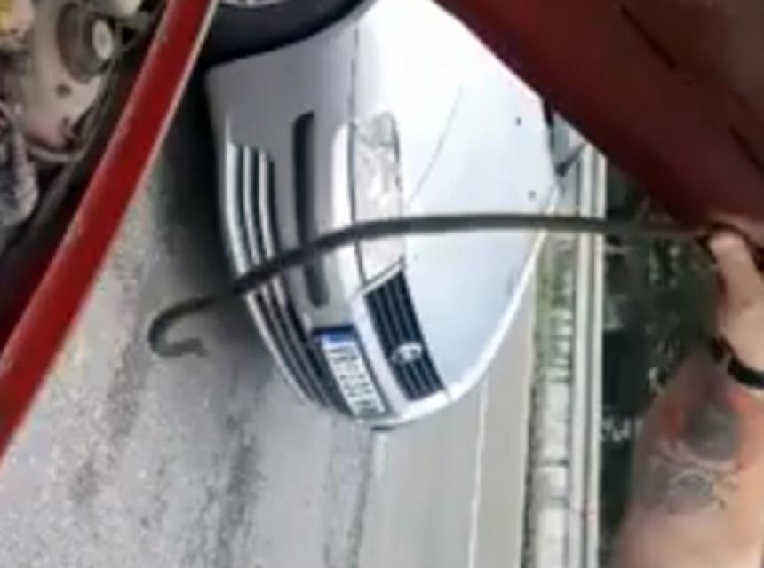 VLADIČIN HAN - Slobodan Stošić iz sela Kržince, opština Vladičin Han, doživio je šok kada je u toku vožnje ka Vranju, na šoferšajbni svog automobila ugledao zmiju koja je izvrila iz haube.