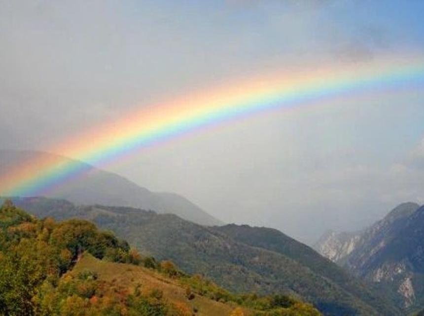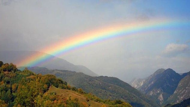 Spektralne boje duge poredane su od crvene na vanjskom rubu do plave na unutrašnjem rubu.