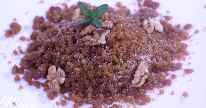 Ono što je važno kod pripreme ove poslastice jeste da konstantno miješate i razbijate grudvice. Kad dobijete sitne mrvice – rešedija je spremna.