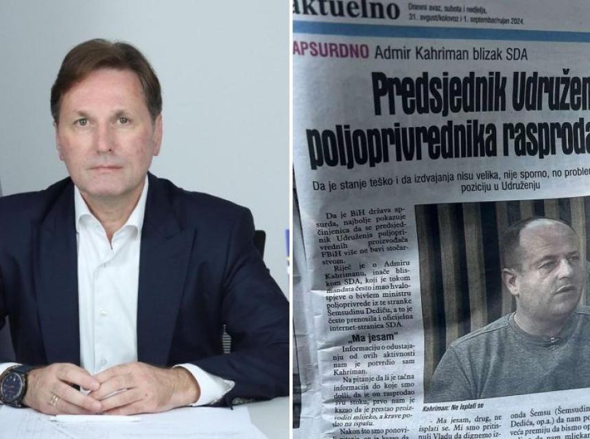 - Obično ne reagujem na ovakve izjave pojedinaca međutim na ovakav istup predsjednika “paralelnog” Udruženja poljoprivrednika Federacije BiH, gospodina Admira Kahrimana moram dati svoj osvrt.