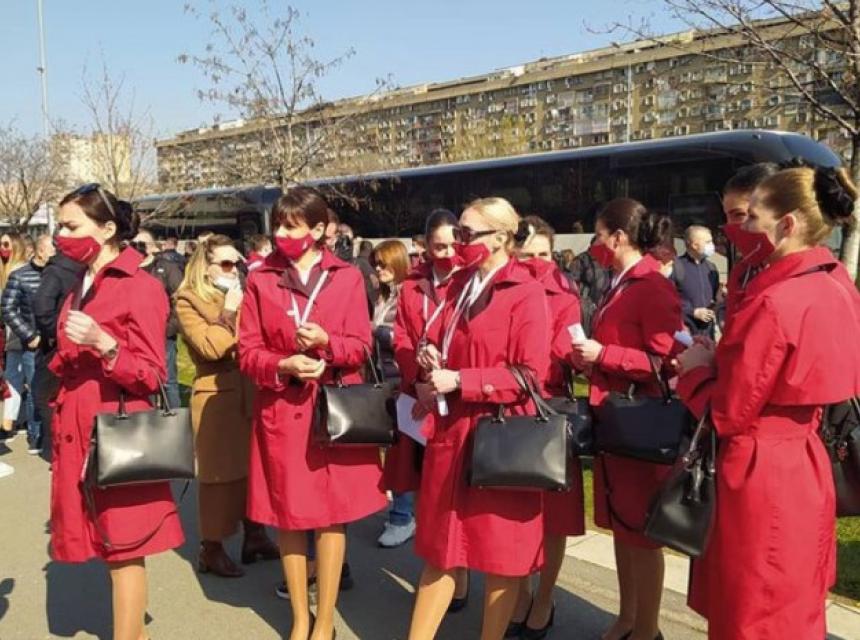 Albanska aviokompanija "Albavings" jutros je organizovala dva čarter leta iz Tirane za Beograd, kojim su došli građani ove zemlje u namjeri da prime vakcinu protiv koronavirusa, a tu priliku je iskoristilo i kabinsko osoblje ove kompanije.