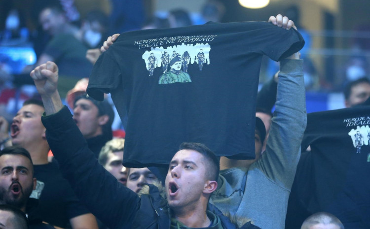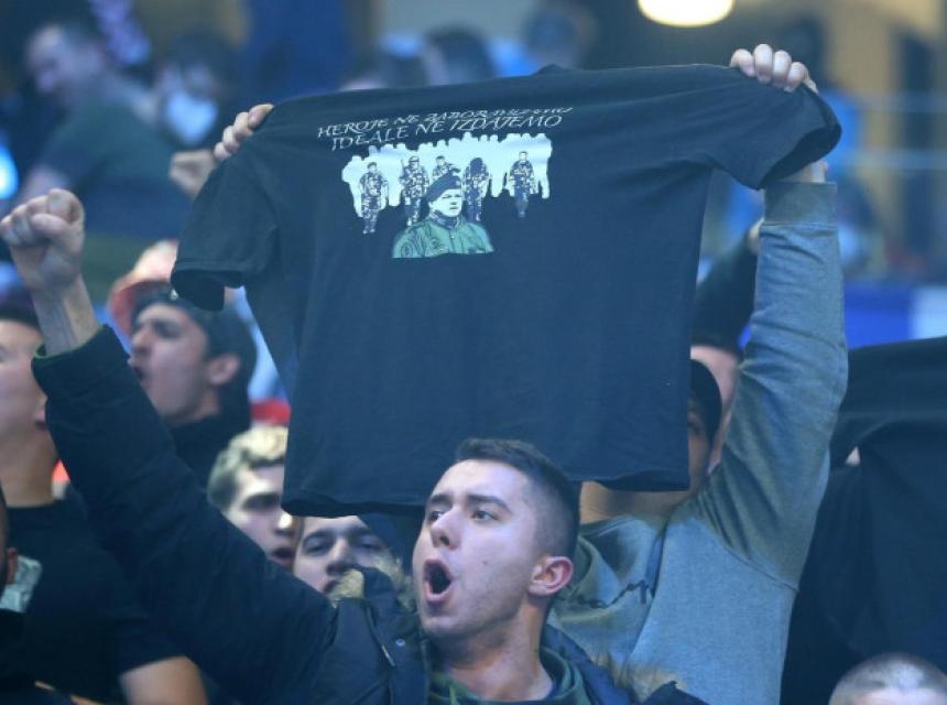 Od prve minute začuli su se povici "Ubij Srbina", a dio navijača snimljen je i u majicama s likom Mihajla Hrastova..
