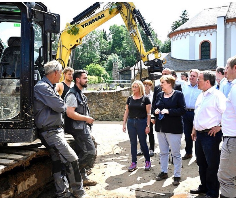 "Za neke ljude koji žive ovdje to predstavlja užasnu situaciju. Mnoge kuće su tako uništene da se u njima ne može boraviti. Jedina utjeha je solidarnost među ljudima", izjavila je Merkel tokom posjete.