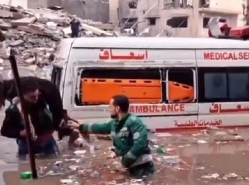 Usred sve veće nestašice hrane, širenja talasa zaraznih bolesti i skorog kolapsa zdravstvenog sistema Gaze, zimska oluja je velika područja pretvorila u blato i potopila mnoge od onih koji su spavali u improvizovanim plastičnim šatorima.