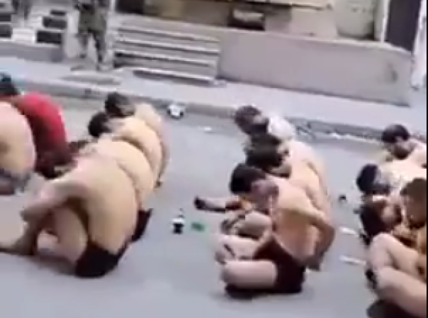 Razodjeveni muškarci viđeni su kako se voze u zadnjem dijelu vojnog kamiona, a kasnije sjede na koljenima s rukama vezanim na leđima. U blizini lokacije koju su izraelski mediji identificirali kao Trg Palestine u gradu Gazi vide se razbacane cipele