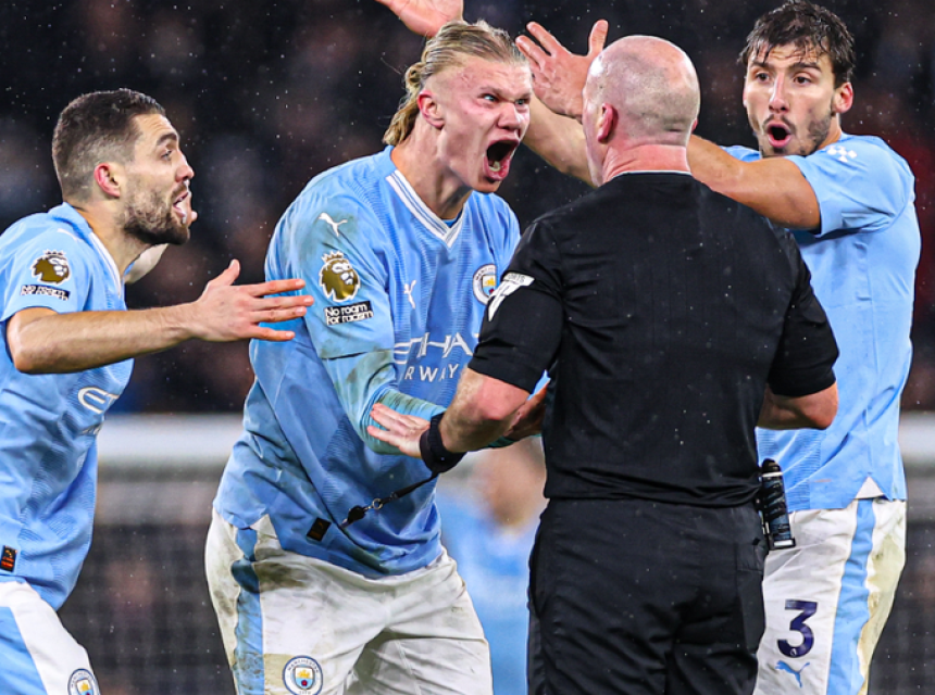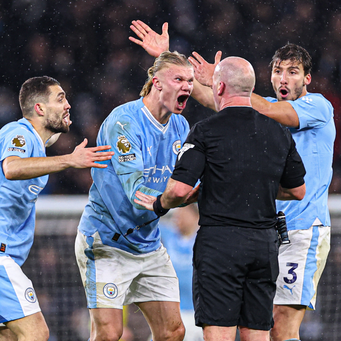 Međutim, Hooper se u tom trenutku oglasio i prekinuo akciju Cityja te vratio loptu kod sredine terena gdje je Royal prethodno faulirao Haalanda.