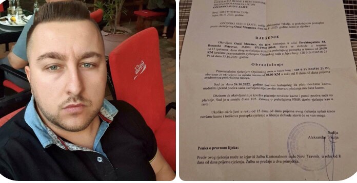 To je tuga i sramota da se u prekšajnom postupku može izreći kazna lišavanja slobode 15 dana, a 1 dan je 100 KM, što kao osnovu iz priloženog se vidi da je to nezakonito doneseno.”- komentrisao je za naš portal Muamer Omić iz Bosanskog Petrovca.