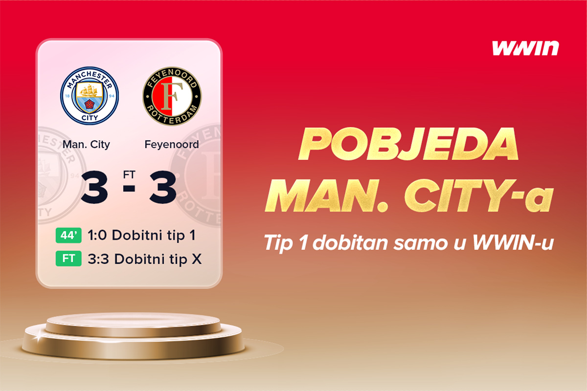 Utakmica Lige prvaka između Man. City-a i Feyenoord-a završila je rezultatom 3-3, ali za korisnike WWIN kladionice ovaj susret bio je razlog za slavlje jer su njihovi gubitni tiketi postali dobitni. Zahvaljujući jedinstvenoj promociji "Zlatni gol", oklade na pobjedu Man. City-a (tip 1) postale su dobitne već u 44. minuti, kada je Erling Haaland postigao prvi gol na utakmici.
