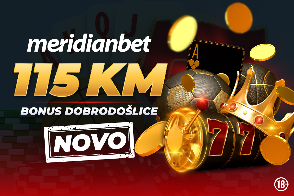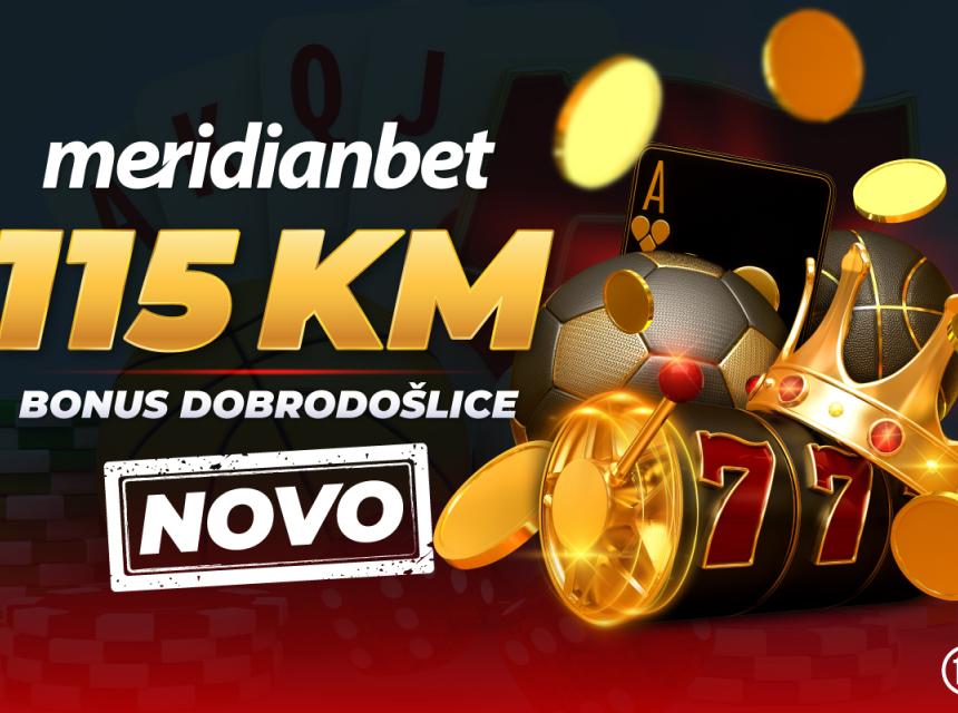 Sve nove Meridianove igrače čekaju najmoćniji bonusi do sada - 100 KM za spinove na Meridian online kazinu i 15 KM na računu za sportske tikete.