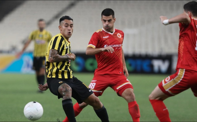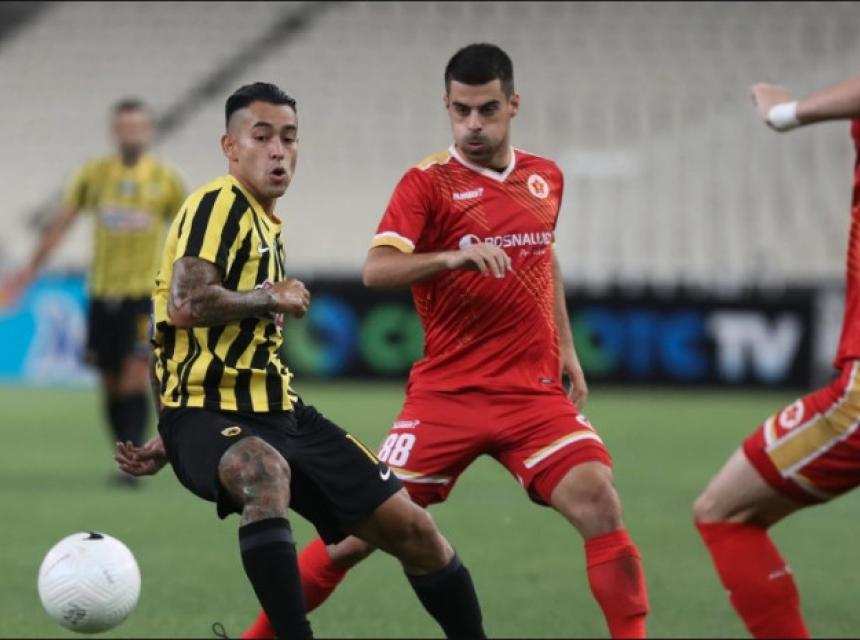 25. - Grci pokušavaju kreirati napad iz zadnje linije, ali dobro postavljeni Velež im to ne dozvoljava. I dalje je 0:0 u Atini.