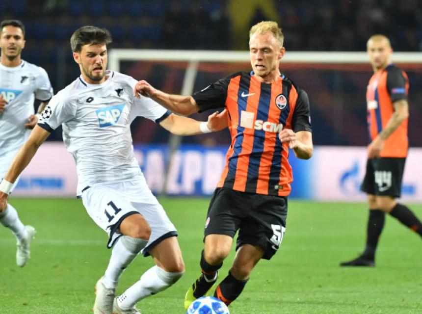 Hofenhajm je do ranog vodstva došao već u 6. minuti susreta kada je Florian Grilič (Grillitsch) majstorski lobirao golmana domaćih za 0:1. Deset minuta kasnije, Adam Šalai (Szalai) je bio u odličnoj šansi u petercu, ali mu je golman domaćih sjajno odbranio udarac. Šahtar je do izjednačenja došao u 27. minuti meča kada je Ismaili (Ismaily) nakon sjajnog solo prodora matirao golmana Hofenhajma Baumana (Baumann). Njemački tim je do novog vodstva došao u 39. minuti kada je Havard Nordvajt (Nordtveit) pratio centaršut iz kornera i precizno glavom pogodio u lijeve rašlje, pored nemoćnog golmana Šahtara za 2:1 i rezultat prvog poluvremena.