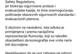 Savez naglašava da se odluka odnosi i na rumunske navijače.
