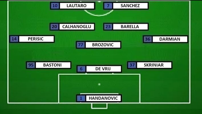 Inter bi protiv Atalante trebao zaigrati u sljedećem sastavu: Handanović, Škriniar, De Vrij, Bastoni (D'Ambrosio), Darmian, Barella, Brozović, Calhanoglu, Perišić, Sanchez i Lautaro Martinez.