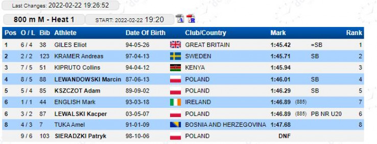 Tuka je večeras nastupio u dvorani u poljskom Torunu, a na kraju je zauzeo tek osmo mjesto s vremenom 1:47.68 minuta.