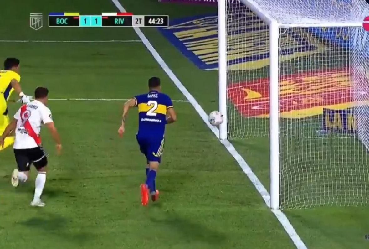 River Plate se našao u prilici za gol nakon što je Álvarez dobio jedan duel protiv López u blizini gola Boca Juniorsa. Na ubačenu loptu istrčao je vratar Andrada, ali nije ju uspio ukrotiti.