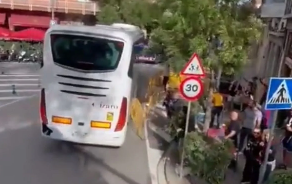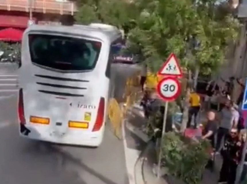 Navijači Barcele su bacali razne predmete prema autobusu, vikali na igrače ljutog rivala, što je očigledno stvorilo i nervozu vozaču.