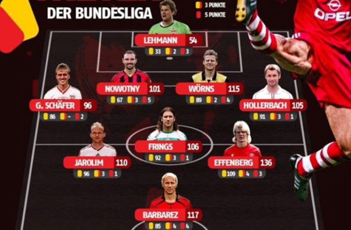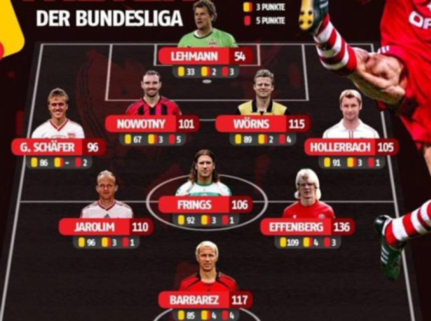 Kvalitet i broj javnih opomena u idealni tim Bundeslige sačinjen od igrača tog profila, svrstao je i ikonu bh. fudbala Sergeja Barbareza.