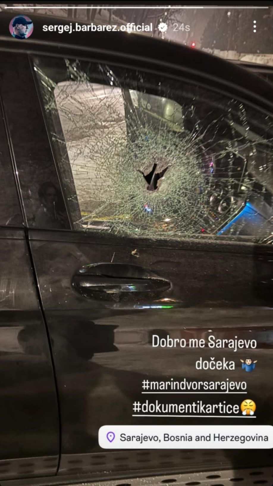 Naime, Barbarez je na društvenim mrežama objavio fotografiju razbijenog prozora na automobilu uz poruku "Dobro me Sarajevo dočeka".