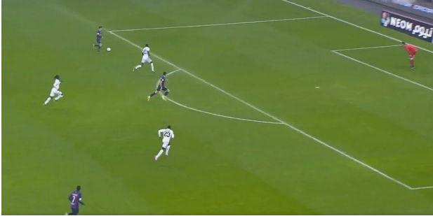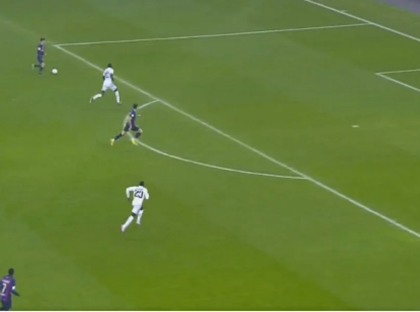 Odbrana Reala je izašla visoko, Gavi je dobio savršenu loptu u prostor te je uposlio Poljaka koji rutinski zabija.
