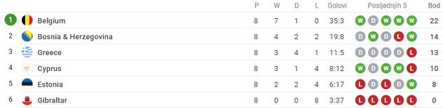 Ovim trijumfom gosti su izborili plasman na Svjetsko prvenstvo. Crveni đavoli su prije ovog meča imali 19, a Heleni su skupili 13 bodova. Kao što je poznato Grčka s našom reprezentacijom vodi bitku za osvajanje druge pozicije, a nakon pobjede Zmajeva u dvoboju s Gibraltarom bh. selekcija se probila na drugo mjesto.