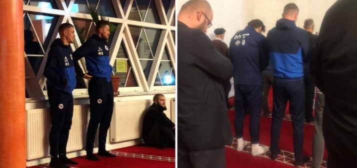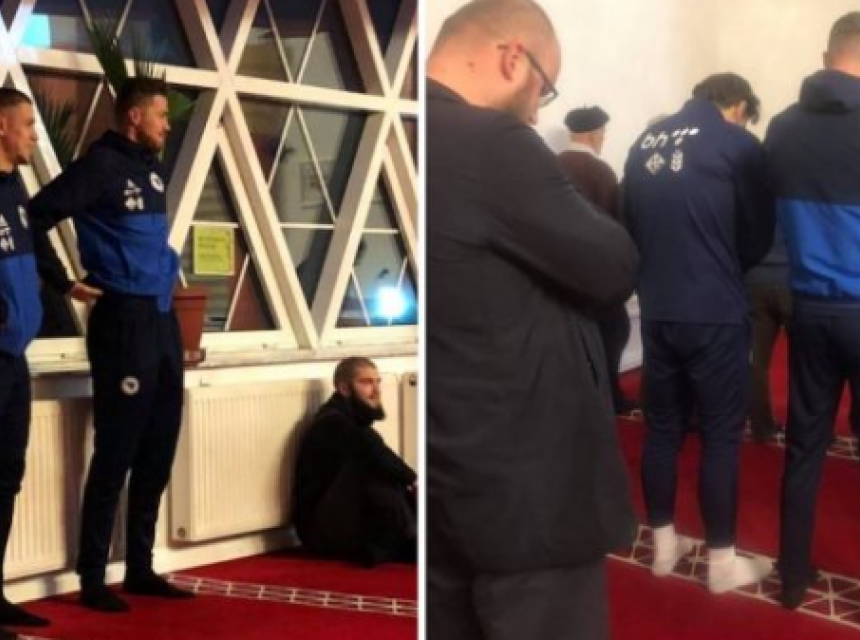 Džematlije zeničke Ensar džamije obradovani su jutros na sabah-namazu dolaskom naših reprezentativaca Muhameda Bešića, Ervina Zukanovića i Ibrahima Šehića, te Kenana Hasagića, trenera golmana naše reprezentacije.
