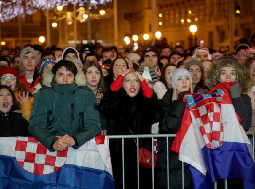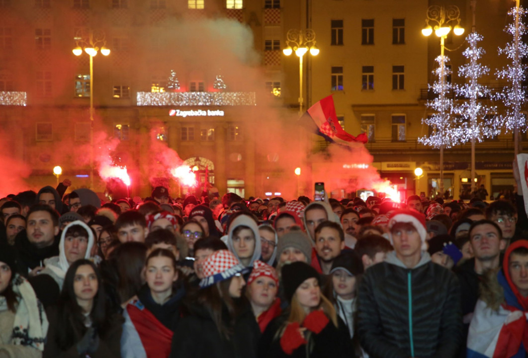 Nema slavlja ni pjesme na Trgu bana Josipa Jelačića u Zagrebu gdje se večeras okupilo više hiljada ljudi da prati utakmicu reprezentacija Hrvatske i Argentine na Svjetskom prvenstvu u Kataru.