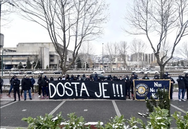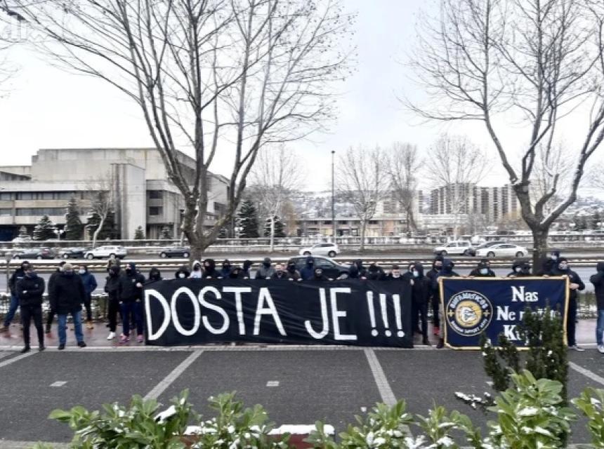 BH. Fanaticosi su ponijeli transparente s natpisima "Dosta je!" i "Nas ne možete kupiti!", a za sada sve protiče u mirnom tonu.