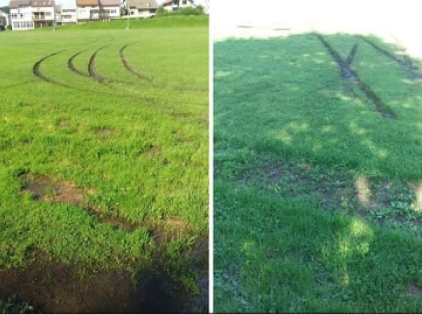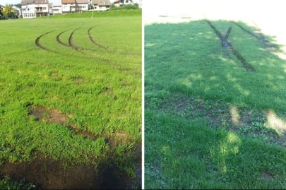 Svuda po travnjaku ostali su tragovi točkova koje će sada trebati ukloniti.