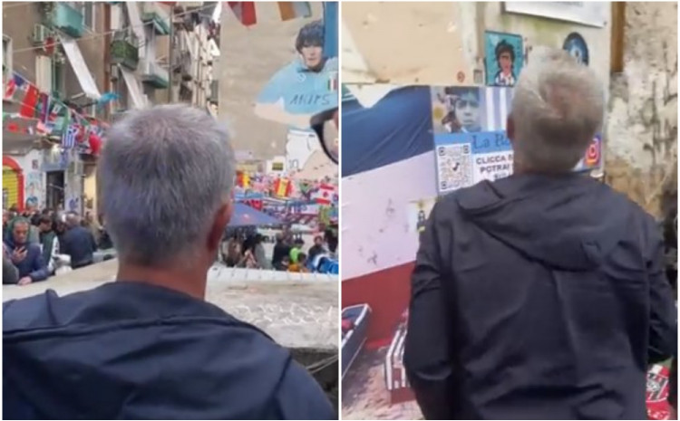 Fudbaleri Rome će večeras kao gosti igrati protiv Napolija u okviru 33. kola italijanske Serije A, a trener "Vučice" Žoze Murinjo (Jose Mourinho) posjetio je mural posvećen legendarnom Dijegu Armandu Maradoni u Napulju.