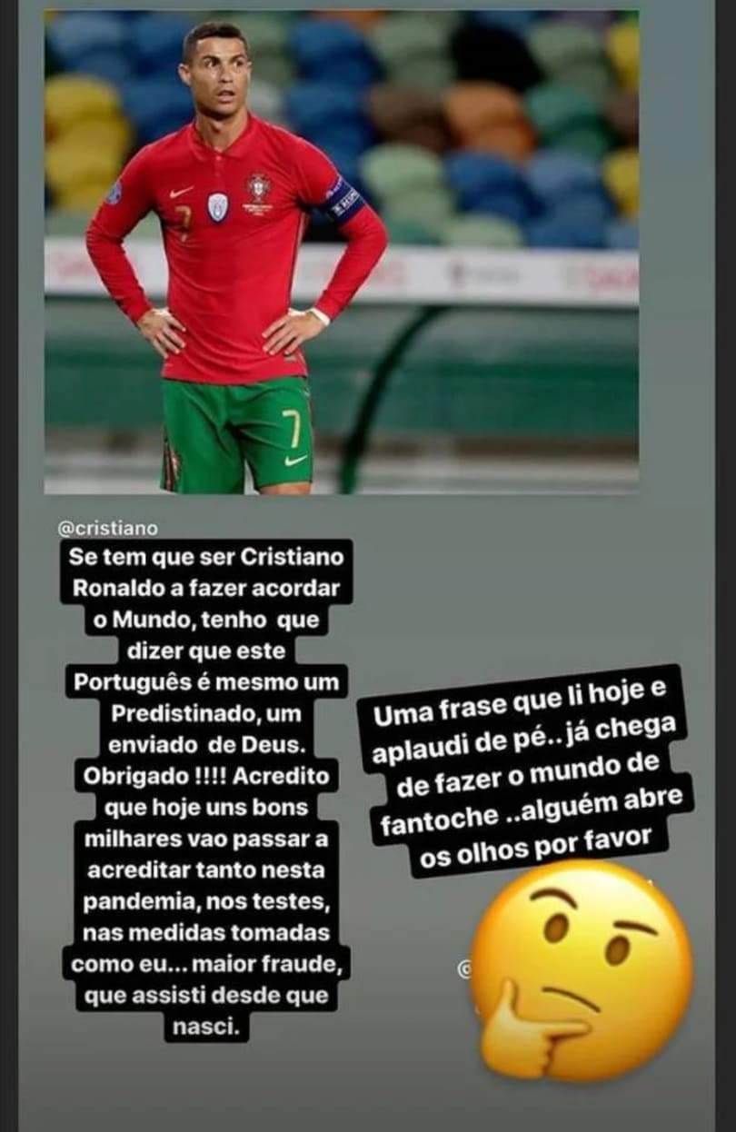 Nakon što je objavljeno da je Cristiano Ronaldo testiran pozitivno na koronavirus, oglasila se i njegova sestra Katia Aveiro kontroverznom porukom na Instagramu.