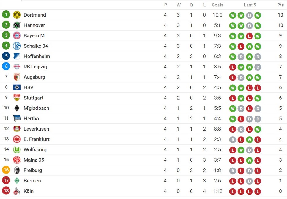 U posljednjem meču četvrtog kola njemačke Bundeslige Borussia Dortmund je pregazila Köln rezultatom 5:0.