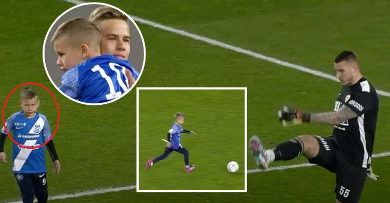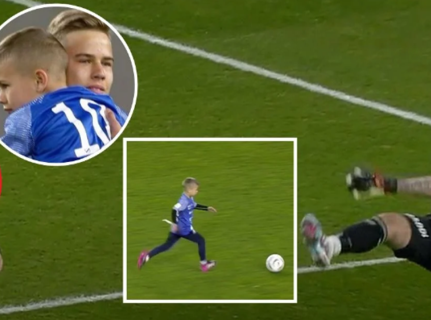 Dječak je izašao na centar u pratnji brata, primio je loptu od kapitena, tračao je sa centra prema protivničkom golu i šutirao je prvi put.