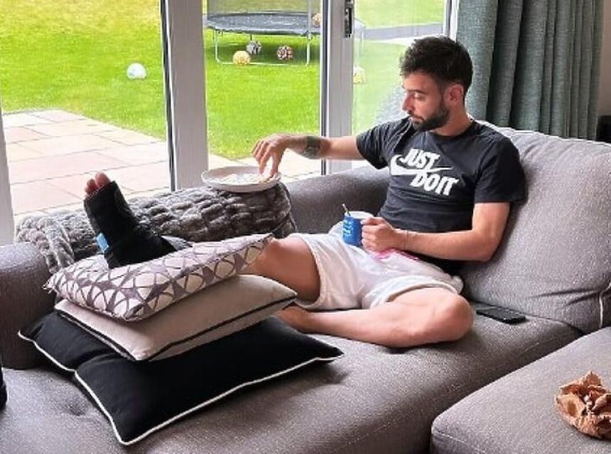 Na fotografiji se Fernandes može vidjeti kako leži na sofi s podignutom desnom nogom dok nosi potporu za zglob. Na tepihu kraj sofe vide se par štaka i zaštitna čizma. Ana je uz objava napisala: "Punjenje."