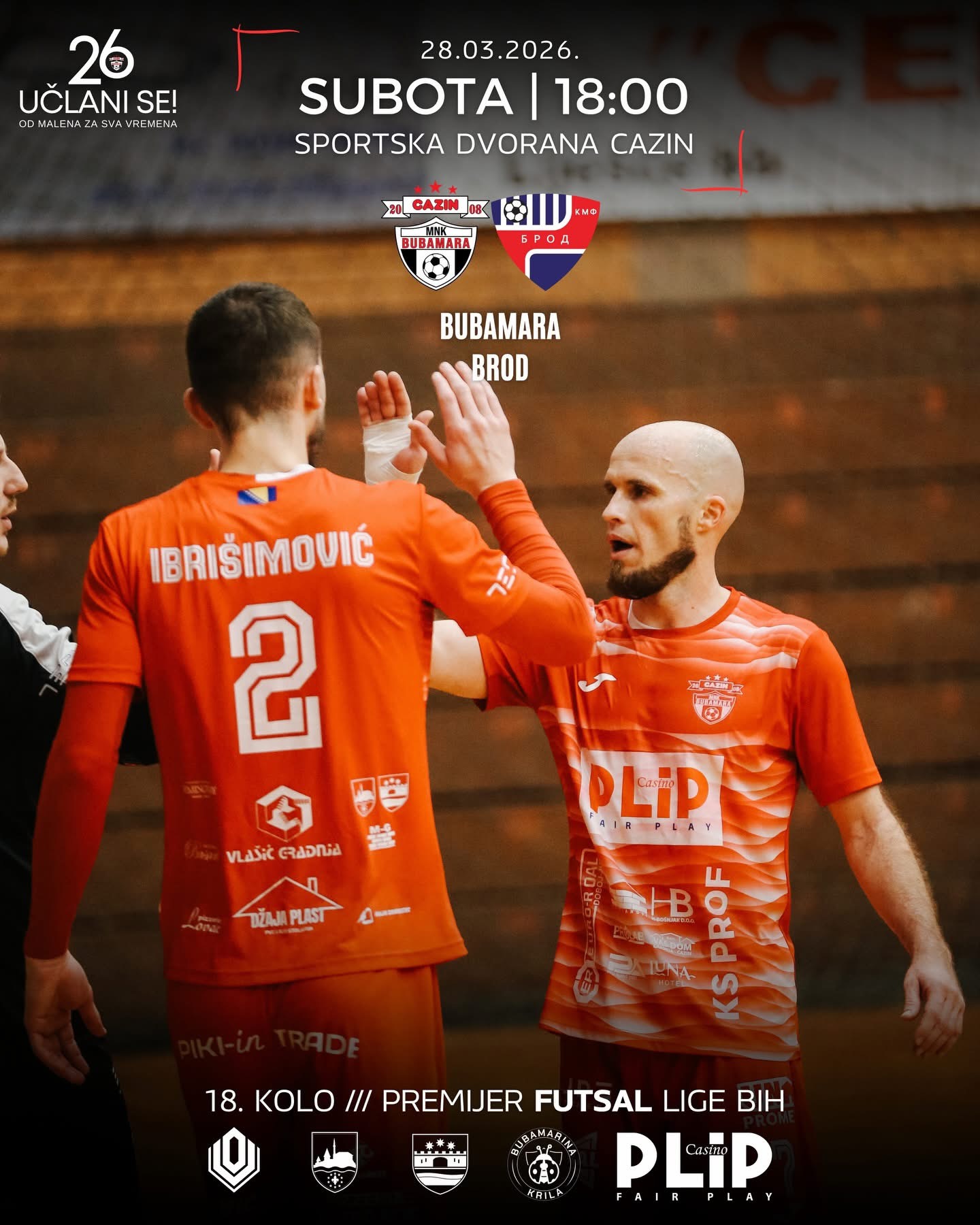 U Sportskoj dvorani u Cazinu ove subote očekuje se prava futsal atmosfera, jer MNK Bubamara Cazin u okviru 18. kola Premijer futsal lige Bosne i Hercegovine dočekuje ekipu KMF Brod.
