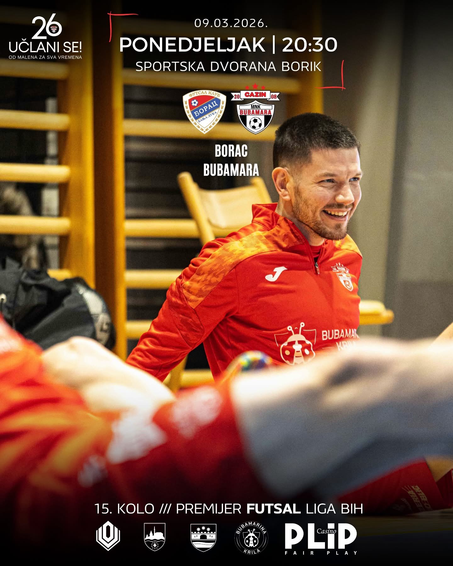 Futsaleri MNK Bubamara Cazin u ponedjeljak, 9. marta, igraju utakmicu 15. kola Premijer futsal lige Bosne i Hercegovine. Cazinski tim gostuje u Banjaluci gdje će snage odmjeriti sa ekipom FK Borac.
