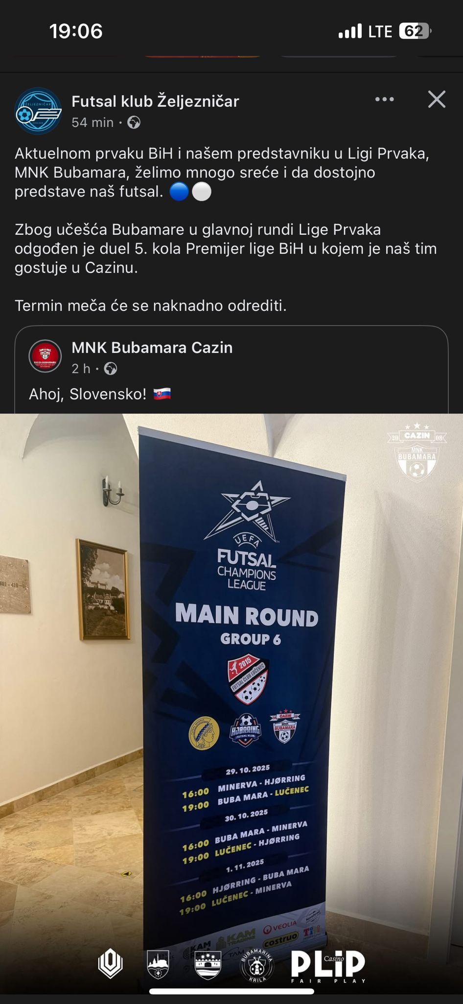👉 “Aktuelnom prvaku BiH i našem predstavniku u Ligi prvaka, MNK Bubamara, želimo mnogo sreće i da dostojno predstave naš futsal.”