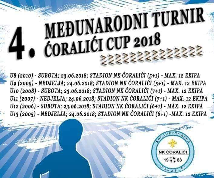 U subotu 23. juna održava nogometni turnir Ćoralići CUP 2018 za djecu od 7 do 13 godina, u organizaciji NK Ćoralići.