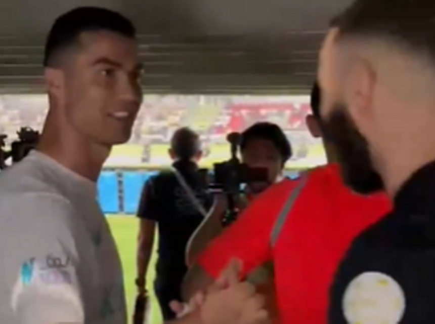 Prije početka meča Ronaldo je bio u ugodnom razgovoru sa nekadašnjim saigračem iz madridskog Reala Karimom Benzemom.