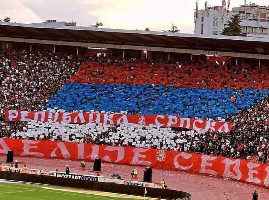 Crvena zvezda na utakmici protiv Čukaričkog proslavlja duplu krunu, a najvatreniji navijači beogradskog kluba Delije su koreografijom pružili "podršku" manjem bh. entitetu RS-u.