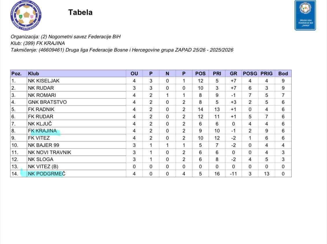 Ekipa gospodina Kuželja u 4 odigrana kola nema osvojenih bodova.