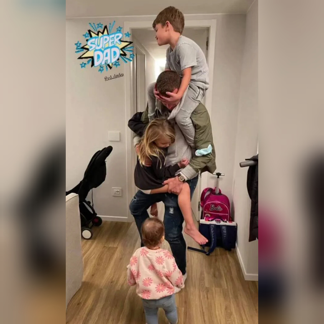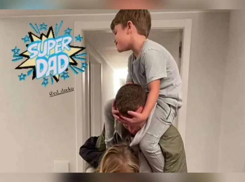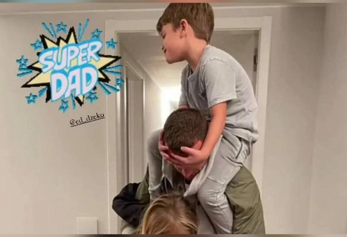 Džeko je na društvenim mrežama objavio fotografiju na koja prikazuje trenutak njegovog druženja i zabave s njegovom djecom, Unom, Danijem i Daliom.