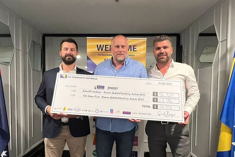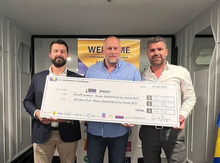 Na sinoćnjoj donatorskoj gala večeri generalnom sekretaru Košarkaškog saveza BiH Ameru Čolanu uručen je ček na 76.006 australskih dolara.