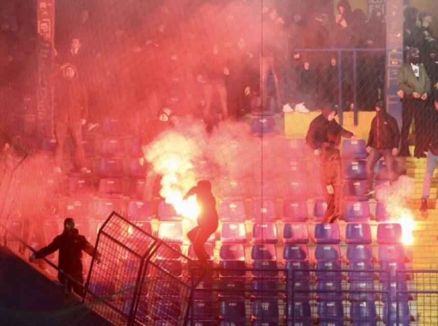Na spomenutom meču, iz dijela tribina sa domaćim navijačima, bacane su baklje prema navijačima Borca.
